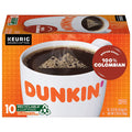 Dunkin' 100% Colombian Coffee Keurig K Cup Pods, 10 Count